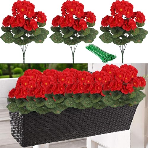 ZenyTra Lot de 3 bégonias artificiels rouges,...