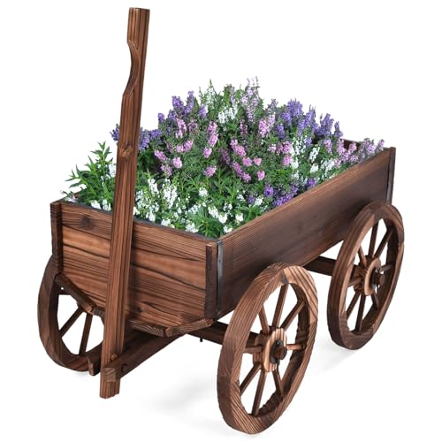 COSTWAY Brouette à Fleurs Jardinière en Bois à...