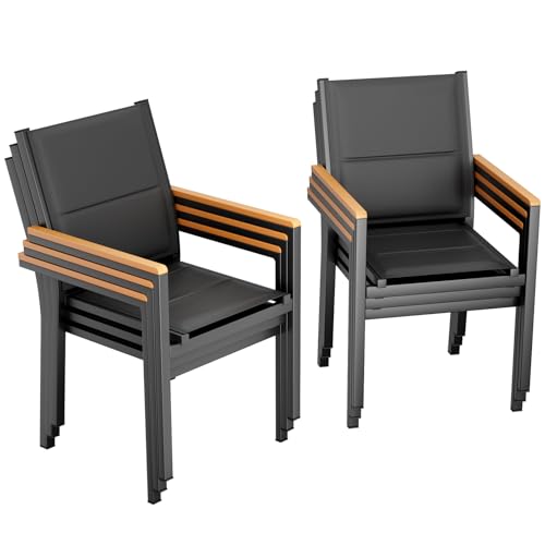 JUMMICO Lot de 4 Chaises de Jardin en Aluminium...