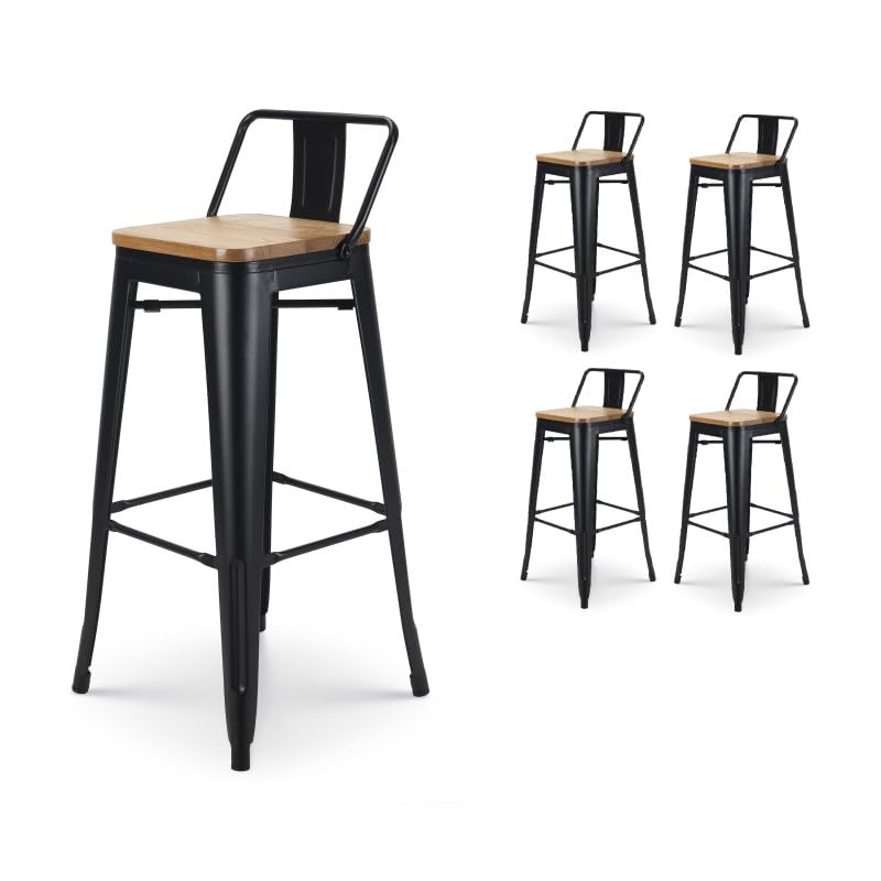 Kosmi Lot de 4 tabourets de Bar en métal Noir...