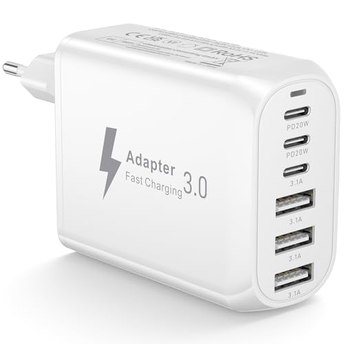 Chargeur USB C 50 W, 5 Ports Chargeur Multiple...