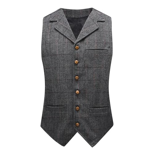 HISDERN Gilet de Costume Homme Gris en Tweed...