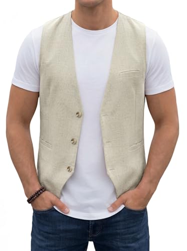 HISDERN Gilet da uomo Beige casual estivo in...