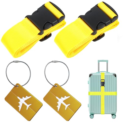 Lot de 4 sangles de valise, 4 étiquettes de...