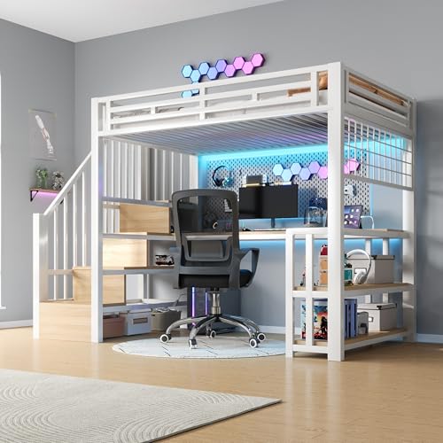Merax Lit Mezzanine 90x200 cm en métal, avec...