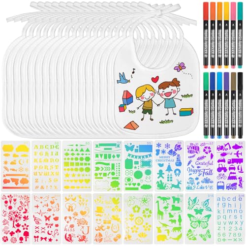 TAIXING Lot de 16 bavoirs à peindre, blancs,...