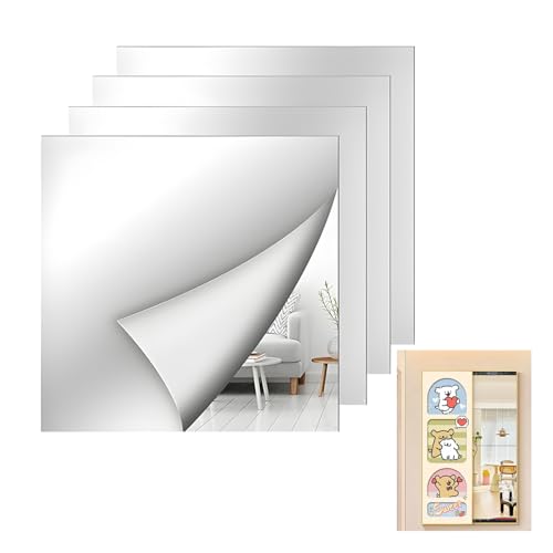 Lot de 4 Miroir Adhesif Mural 20x20cm Acrylique...