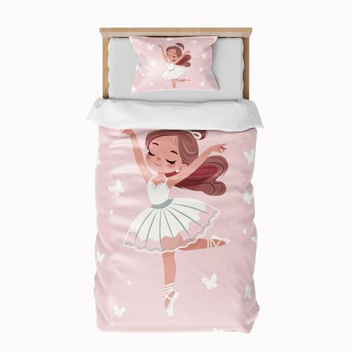 DJDEA Housse de Couette Rose 90x190 Enfant...