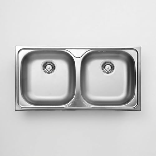 Évier de cuisine en acier inoxydable - 2 bacs -...