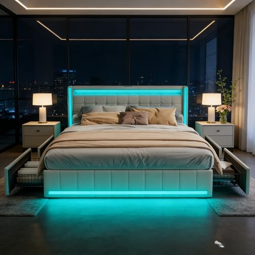 LIVLUX Lit 140x200 avec Sommier LED et USB,Lit...