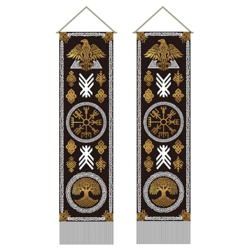 AHANDMAKER Lot de 2 tapisseries signe Vikings,...