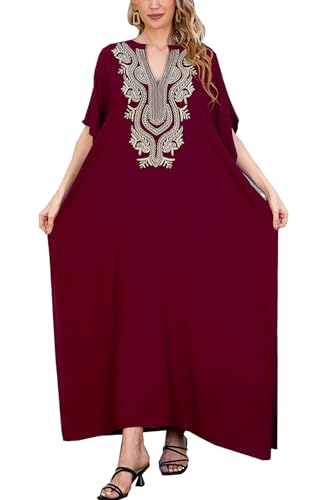 L-Peach Femmes Robe longue caftan brodée pour...